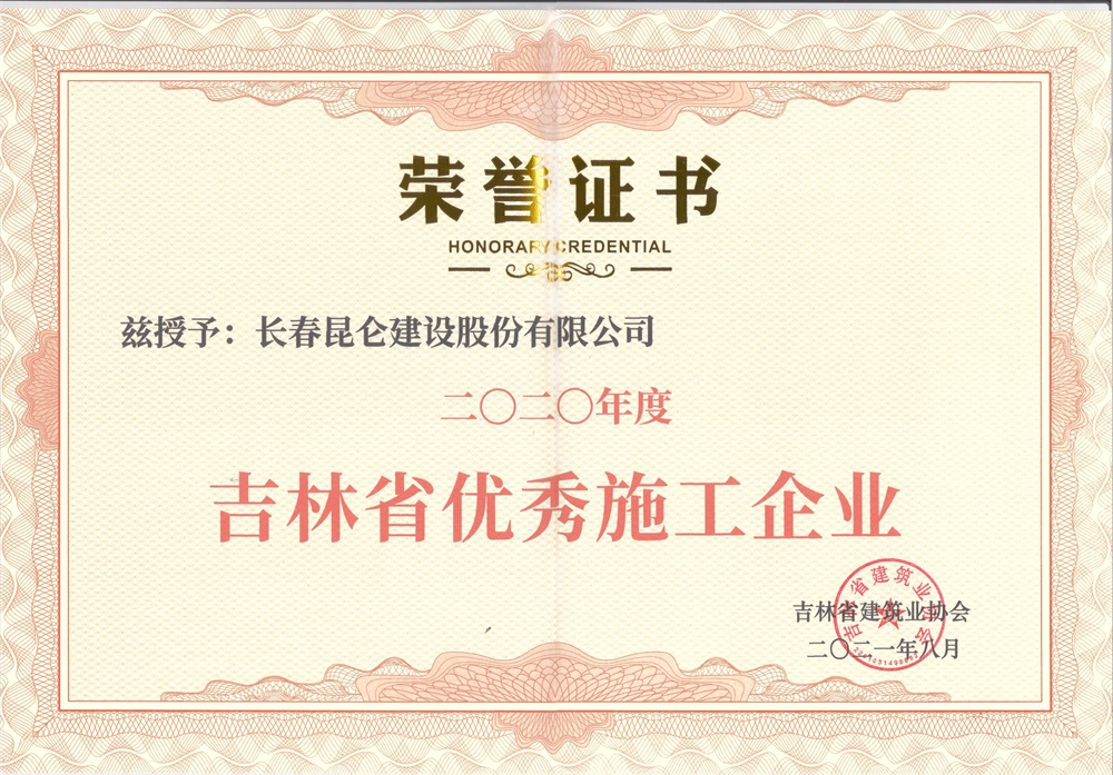 2020年度吉林省优秀施工企业