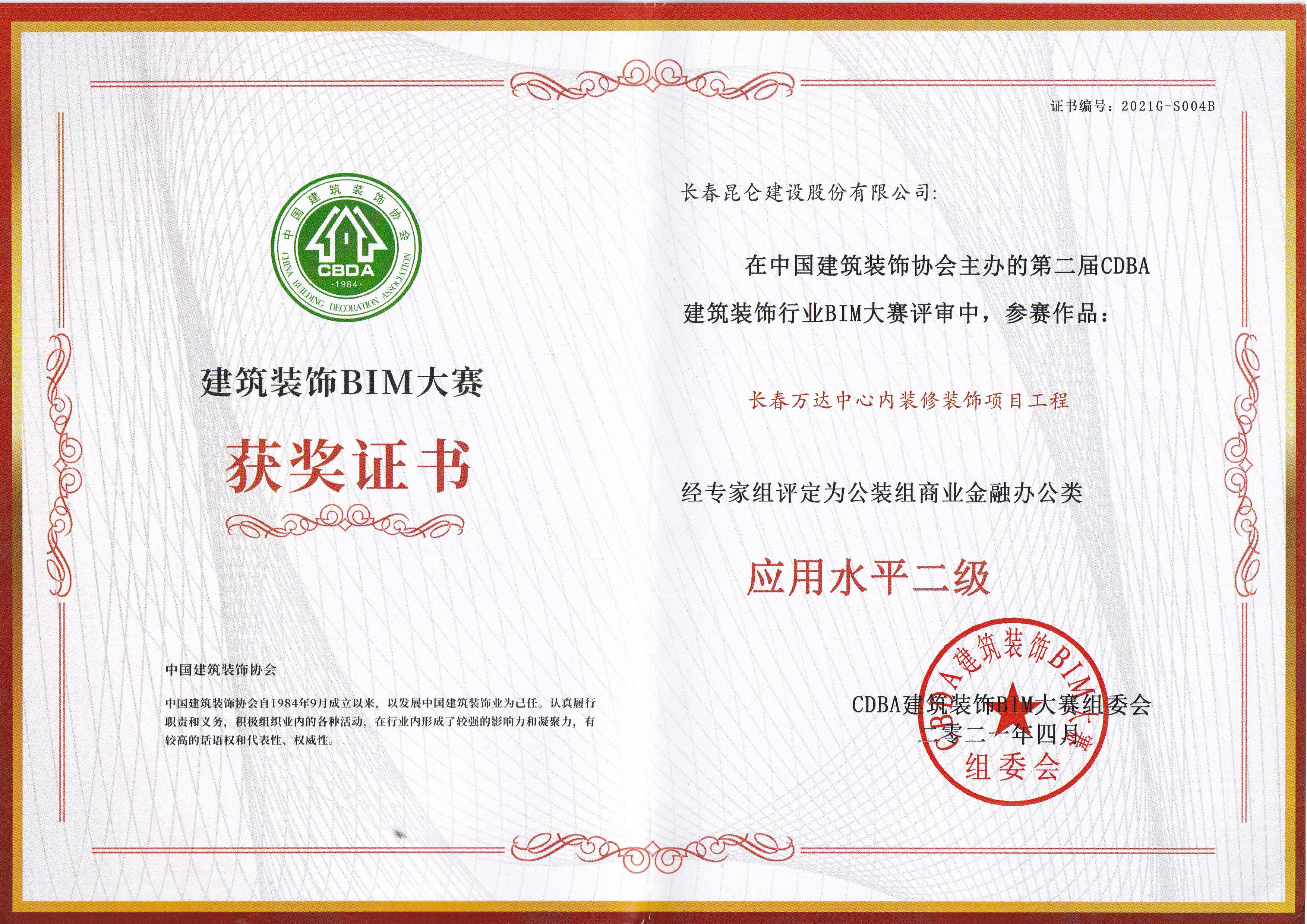 吉林省优质工程装饰奖