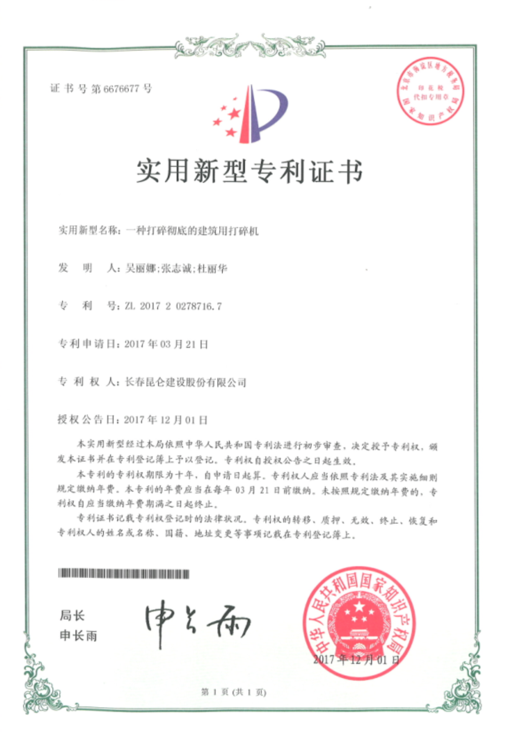 专利证书