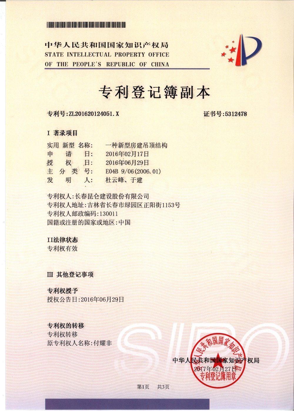 专利证书